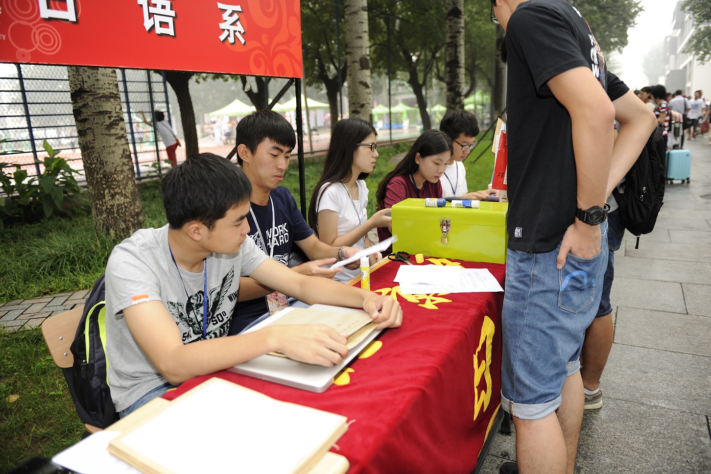2014级新生于9月1日到校报到,日语系在林荫道迎新处迎接新生。